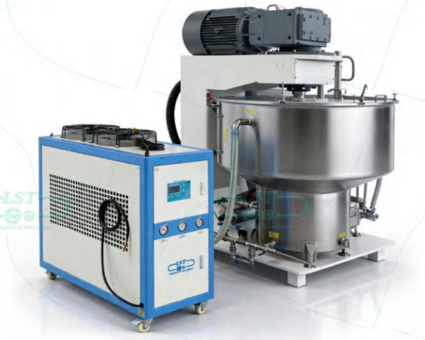 O moinho de esferas vertical para a produção de massa de cocoa (liquor de cocoa) épara moer o nibs de cocoa alimentados finamente até granolumetria de 20-30 micras através do impacto e fricção entre o material e as bolas de aço no cilindro vertical.